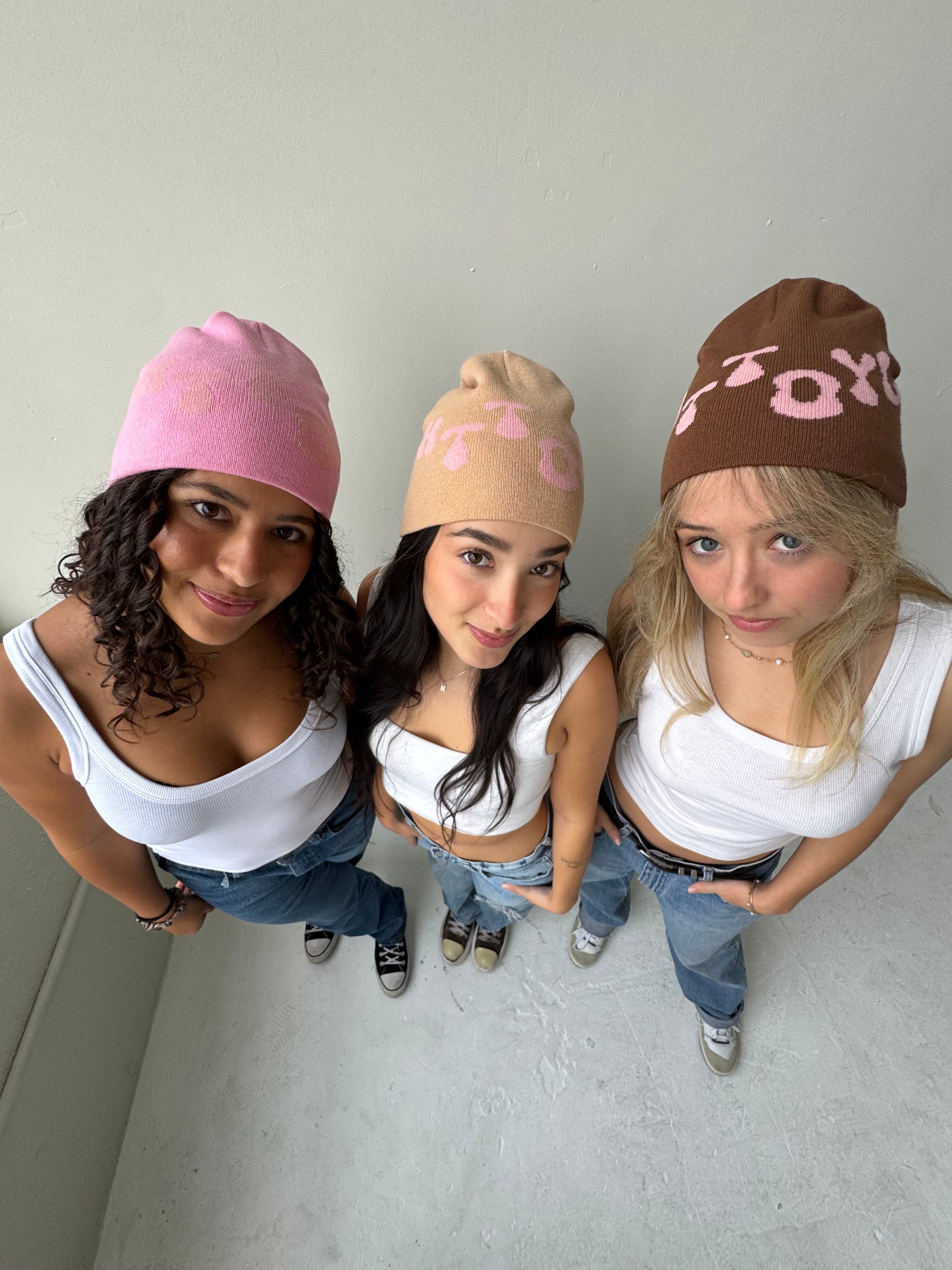 stay cozy with our v-day inspired beanie that comes in 3 different colors - coffee, cocoa, and sugar